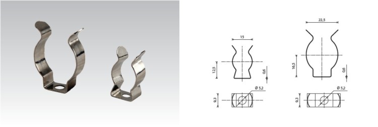 Pružinové objímky jsou vyrobeny z nerezové oceli. Připevňují se šrouby k nosné části a jsou určeny pro uchycení světelného zdroje. Nejčastěji se používají při výrobě světelných reklam, některých typů svítidel nebo jiných světelných aplikacích