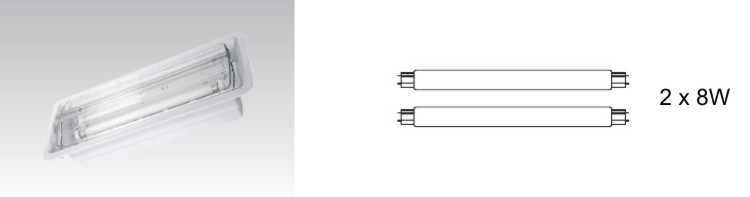 | ELLEN 208 | 230-240V, 50/60Hz | 2 x 8W | 355 x 117 x 76 | 3 h. | IP65 | 3,6V/5000mAh NiCD | 0,890 |