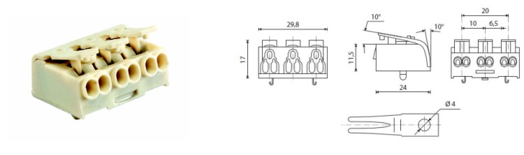 | svorkovnice TERMINAL CLIP | 450 | 16 | 110°C | max 2,5 mm2 | 30 x 25 x 15 |