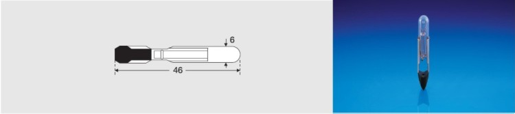 Signalizační telefonní žárovky o rozměrech 6×46mm a paticí T6,8 životnost 2.000h.