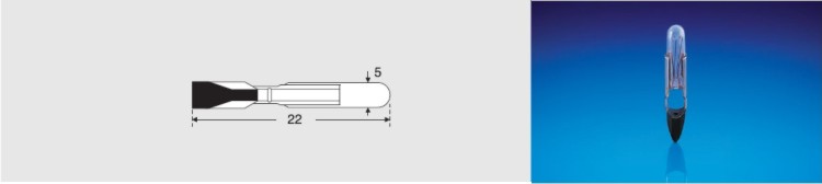 Signalizační telefonní žárovky o rozměrech 5×22mm a paticí T5,5K životnost 2.000h.