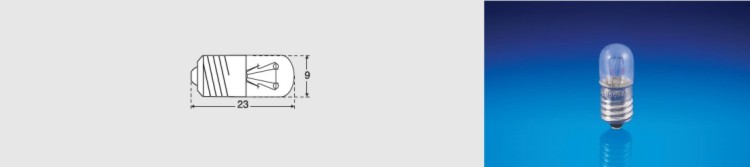 Signalizační žárovky o rozměrech 9×23mm a paticí E10, životnost 1.500h.