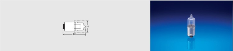 Signalizační halogenové žárovky pro mobilní návěstidla o rozměrech 10×28mm a paticí Ba9s, životnost 2.000h.