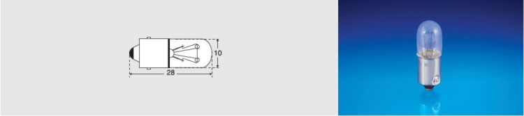 Signalizační žárovky o rozměrech 10×28mm a paticí Ba9s, životnost 1.500h.